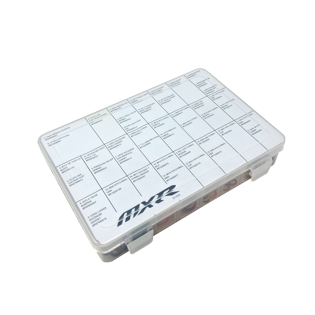 Im Inneren findest du alles, was du brauchst: O-Ringe in verschiedenen Größen, Kupfer-Luftfilter, Präzisionsschrauben und wichtige Dichtungen. Außerdem enthalten: Gen2-Solenoid-Teile, SLAP2 ASA Locking Clips, ARC-X Valve Bumper und Bolt Valve Federn. Jedes Teil ist auf Langlebigkeit und Zuverlässigkeit ausgelegt – für einen super-smoothe und konstanten Betrieb deines MXR.